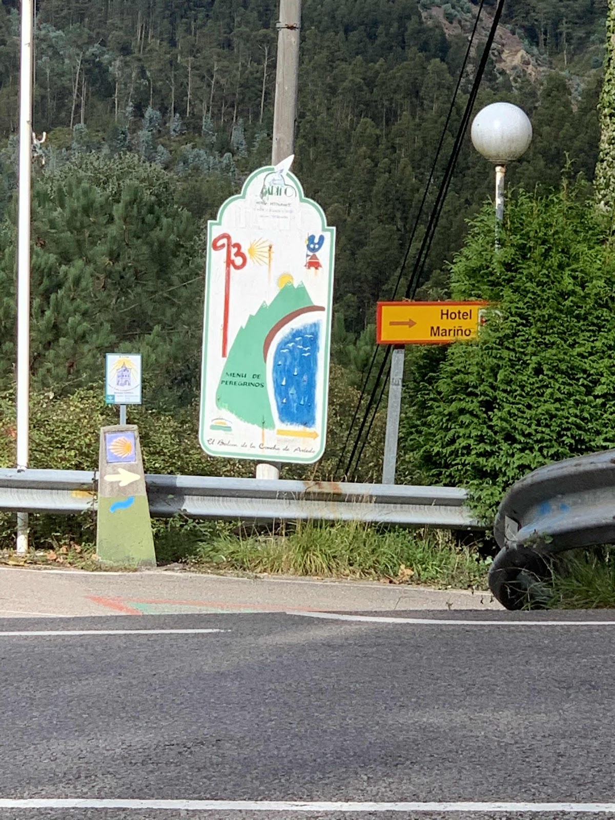 Down almost to the ocean and back up again. Stopping to rest and chat with now best Camino friends. Kind of like cruisers.